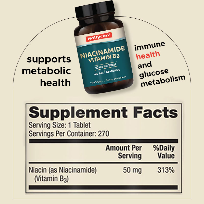 니아시나마이드는 세포 및 피부 건강, 인지 기능, 수면, 스트레스 관리, 면역 건강 및 포도당 대사를 포함하여 신체의 많은 기능을 지원합니다.
