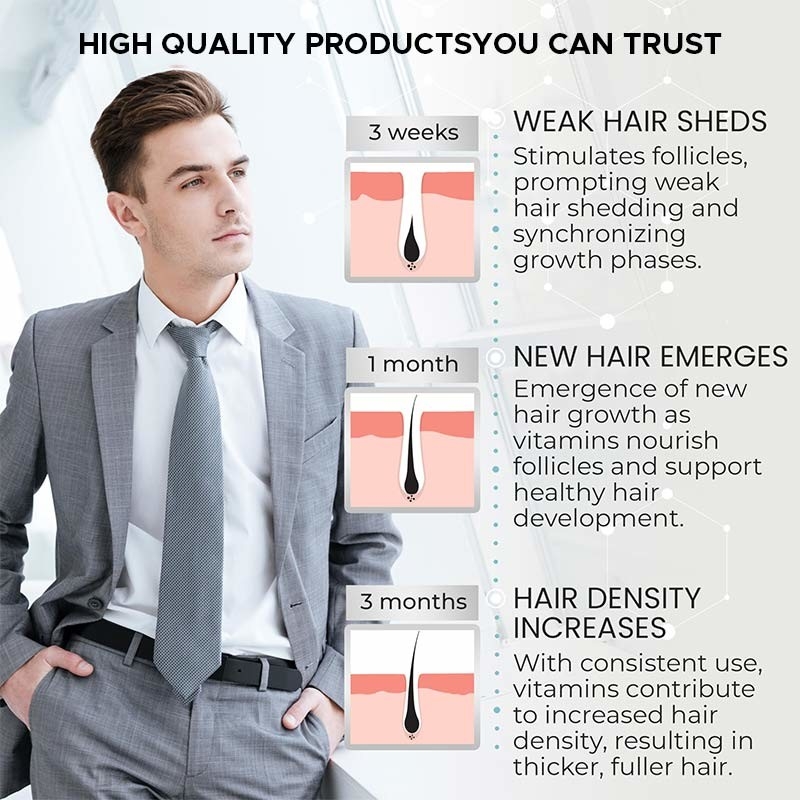 남성용 홀리콘 헤어 성장 약은 탈모의 근본 원인을 목표로 합니다. 머리카락이 더 빠르고 더 꽉 찼고 더 강하게 자라도록 합니다.