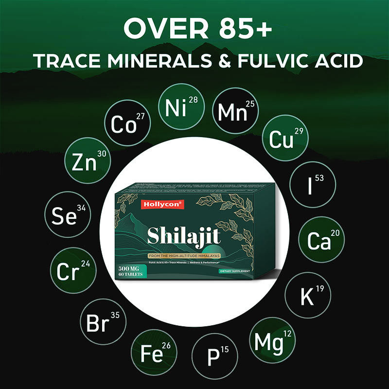 홀리콘 실라지트 태블릿은 18,000 피트 높이의 히말라야 산에서 얻은 순수하고 유기적인 실라지트로 구성되어 있으며 필수 미네랄과 풀브산으로 풍부합니다.면역 기능으로 유명합니다.신체적 견고함과 강력한 항산화 작용을 가진 이 시라지트 태블릿은 자연의 깊은 효능에 대한 증거입니다