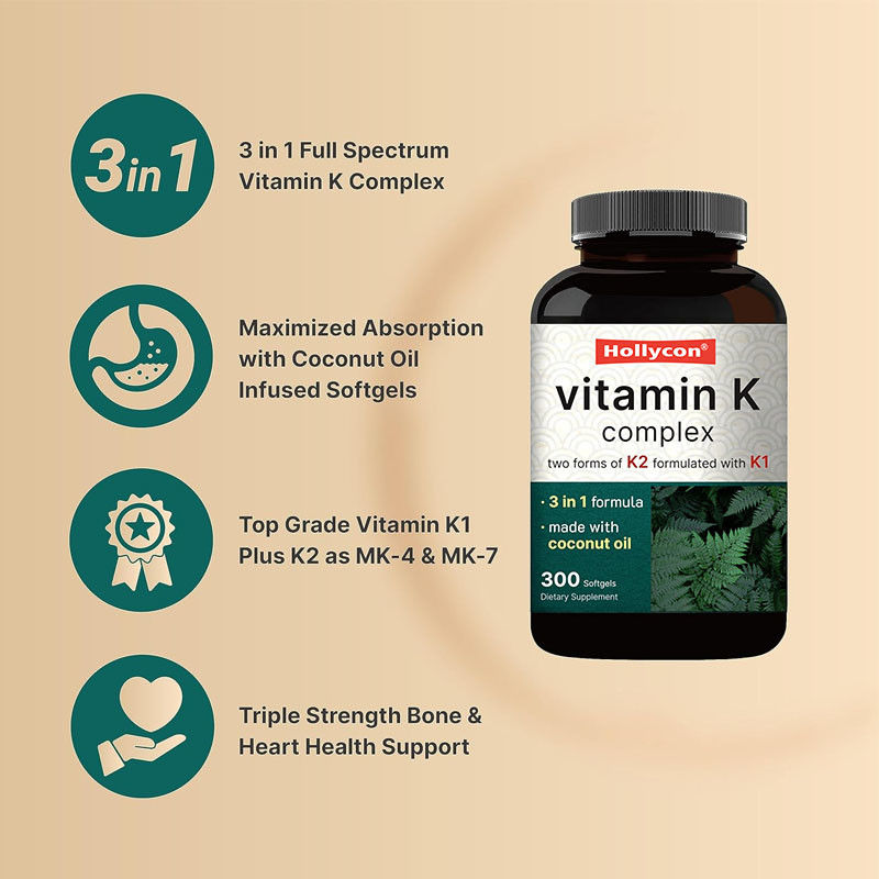 우리의비타민 K 콤플렉스 소프트 젤지원하기 위해 고안된 강력한 3인1 공식심장,뼈,관절 건강, 그리고칼슘 흡수이 완전비타민 K비타민 K의 필수 형태를 결합K1,K2 (MK4), 그리고K2 (MK7)신체의 중요한 기능을 유지하는 데 도움이되는 포괄적인 혜택을 제공합니다.
