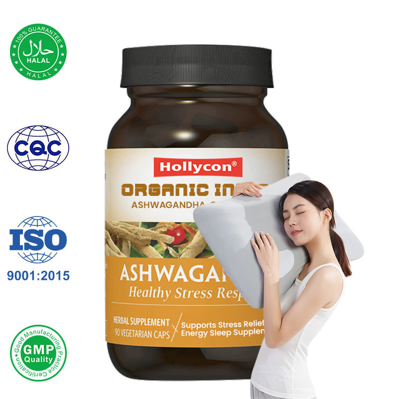 인도의 유기농 아슈바간다 캡슐은 스트레스 완화 에너지와 수면을 지원합니다.