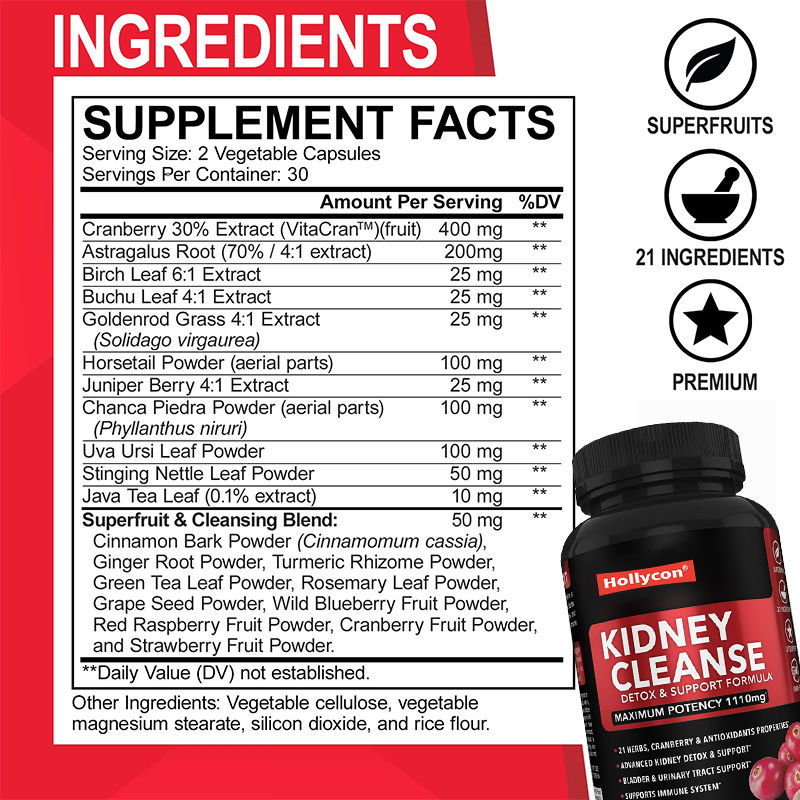 Hollycon의 천연 허브 추출물 공식은 적절하고 효과적인 방광 지원 및 신장 건강 기능을 위해 프리미엄 해독을 자극합니다.