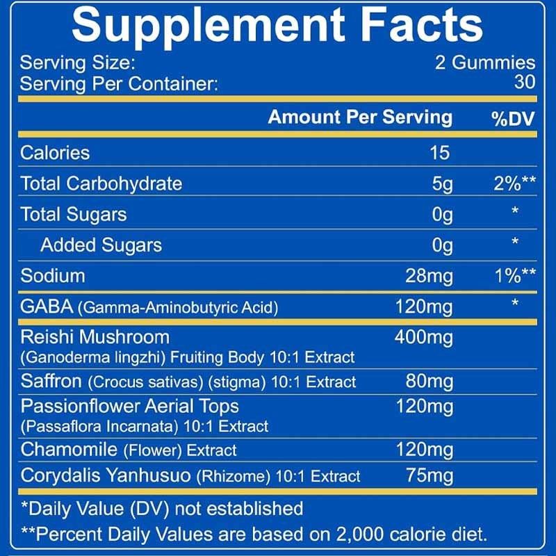 주요 성분:GABA, 레이시 버섯, 사프란, 파시온플라워